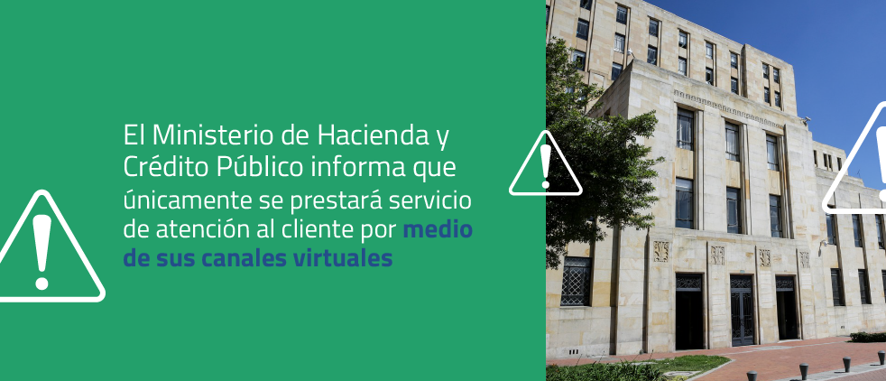 El Ministerio de Hacienda y Crédito Público informa que únicamente se prestará servicio de atención al cliente por medio de sus canales virtuales